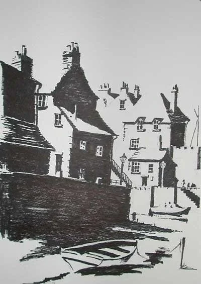 This slipway picture was done with thick marker on water colour painting paper. The dimples in the paper where marker did not touch makes it look like brickwork.
